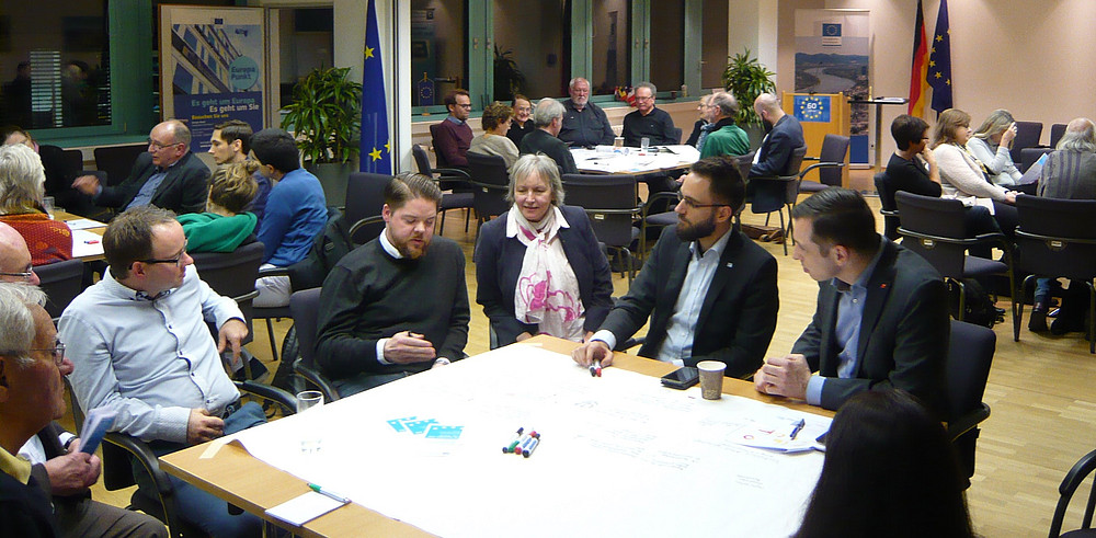 Die Europa-Union Bonn/Rhein-Sieg veranstaltete wieder ein World Café, diesmal mit den Jungen Europäischen Föderalisten, der Europa-Union NRW e.V. und der Europäischen Kommission, mit Unterstützung durch das EDZ Köln. Die Expertin und Experten stellten sich nach kurzen Statements in kleinen Gruppen den Fragen der Teilnehmer und diskutierten mit Ihnen. Die Veranstaltung richtete sich an beruflich oder ehrenamtlich Tätige im Europabereich, sowie an Europainteressierte Bürgerinnen und Bürger. Alle waren herzlich willkommen!