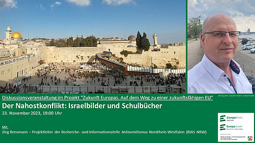 Das schreckliche Wiederaufflammen des Nahostkonflikts stellt Europa vor neue Herausforderungen. Dies gilt nicht nur für die Außenpolitik, sondern auch innerhalb unserer Gesellschaften. Im Rahmen des Projekts „Zukunft Europas. Auf dem Weg zu einer zukunftsfähigen EU“ wollen wir gemeinsam mit Jörg Rensmann, Projektleiter der Recherche- und Informationsstelle Antisemitismus Nordrhein-Westfalen (RIAS NRW) darüber diskutieren, wie die europäische Zivilgesellschaft sowie das Land NRW sich mit dem Thema auseinandersetzen können und welche… » weiterlesen