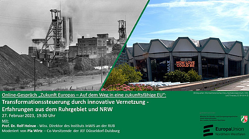 Am Montag, dem 27.02 ab 19:30 Uhr möchten wir Sie herzlich zu einem Online-Gespräch mit Prof. Dr. Rolf Heinze, dem wissenschaftlichen Direktor des Instituts für Wohnungswesen, Immobilienwirtschaft, Stadt- und Regionalentwicklung an der RUB einladen. Gemeinsam werden wir uns am Beispiel des Ruhrgebiets anschauen, wie Transformationsprozesse gesellschaftlich organisiert werden können und welche Lehren sich für das Europa von morgen ableiten lassen.