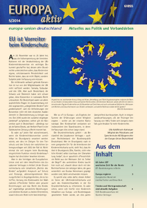In der aktuellen Ausgabe stellt sich der neue JEF-Bundesvorstand vor. Zudem finden Sie einen Beitrag zur UN-Kinderrechtskonvention sowie Berichte über die EUD-Akademie in Neubrandenburg, den Europäischen Abend „Europa regieren“, den Bundesausschuss in Berlin mit EU-Kommissar Oettinger, den Besuch unseres Präsidenten an der TU Chemnitz und die Bürgerdialogreihe der Europa-Union zum transatlantischen Freihandelsabkommen. Wie immer gibt es auch viele interessante Berichte aus den Landesverbänden.